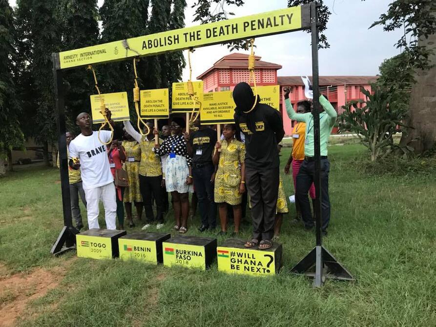 Et viktig arbeidsområde for AI Ghana er dødsstraff, en straff som er nedfelt i grunnloven og derfor vanskelig å fjerne. I praksis praktiserer ikke Ghana dødsstraff da ingen har blitt henrettet siden 1993, men likevel var det ifølge Amnestys rapport 160 mennesker med dødsdom i Ghana per 2017. Et spesielt stort problem med dødsstraff i Ghana er at de dømte ofte er fattige og ikke er bevisst sine rettigheter. Sannsynligheten for at uskyldige blir dømt er derfor altfor stor.